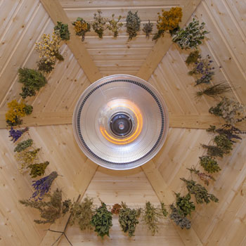Der Anblick der Heilkräuter über Dir erfreut das Herz, der Duft belebt und Wärme von oben und unten lassen Deine Muskulatur entspannen.